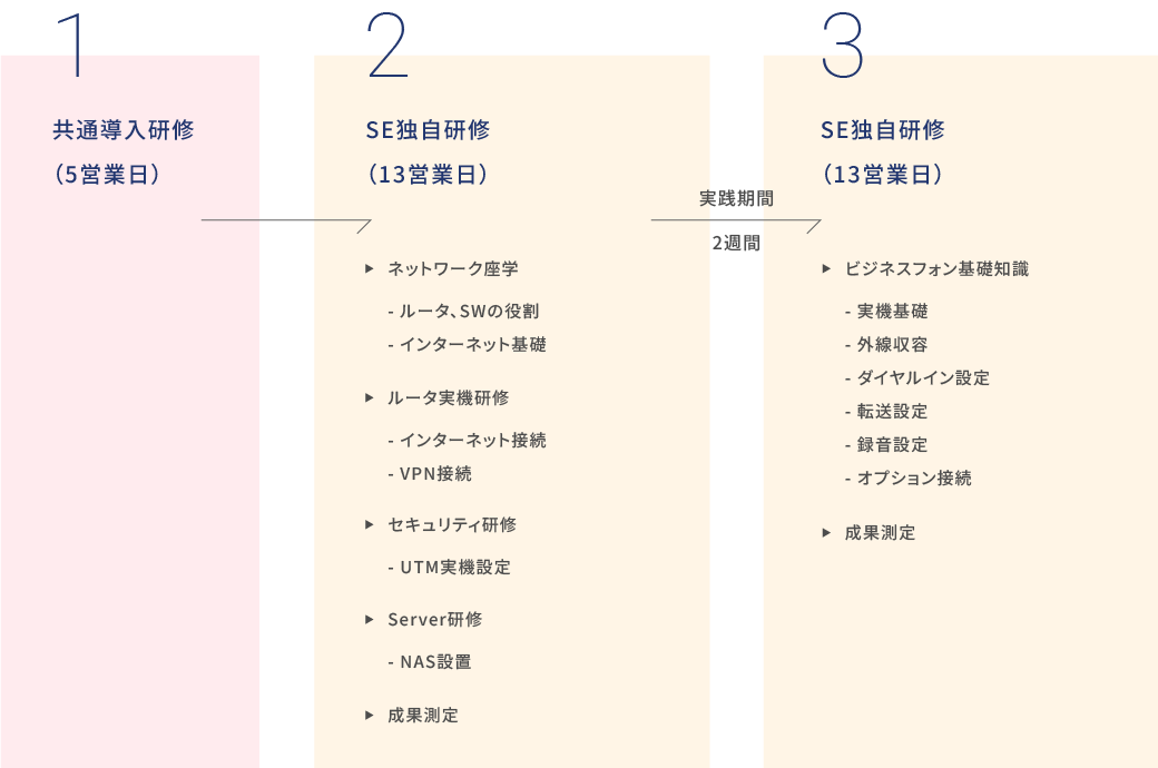 営業の基礎力や基本的な技術力を培う知識研修はもちろん、法人営業力のさらなる強化、最新技術を学べる実践的なトレーニングなど、社員の専門性向上に資するコンテンツを幅広く提供しています。