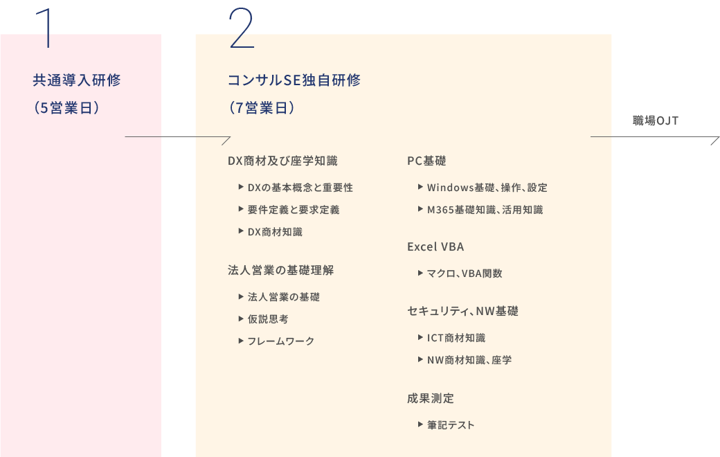 - 共通導入研修では、すべての職種に必要となる基礎スキルを習得